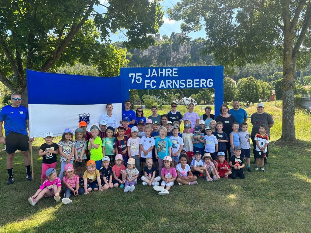Bei Stationen wie Tennis, Kider-Yoga, Fussball3, Dribbelparcour, Geschwindigkeitlaufen erspielten sich die Kids von Arnsberger Kindergarten mit ihren eifrig mitmachenden Erzieherinnen und Elternbeiräten FCA-Medaillen, die ihnen von den Jugendtrainer des FCA überreicht wurden.