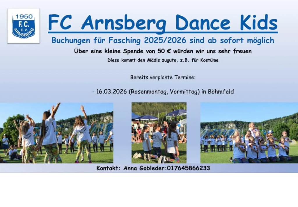 Unsere Dance Kids trainieren schon wieder fleißig für den Fasching 2025/2026. Ihr könnt uns ab sofort für eure Veranstaltung buchen 🎉💙🤍. Alle Infos im Flyer 😉 #fasching #FCA #dancekids