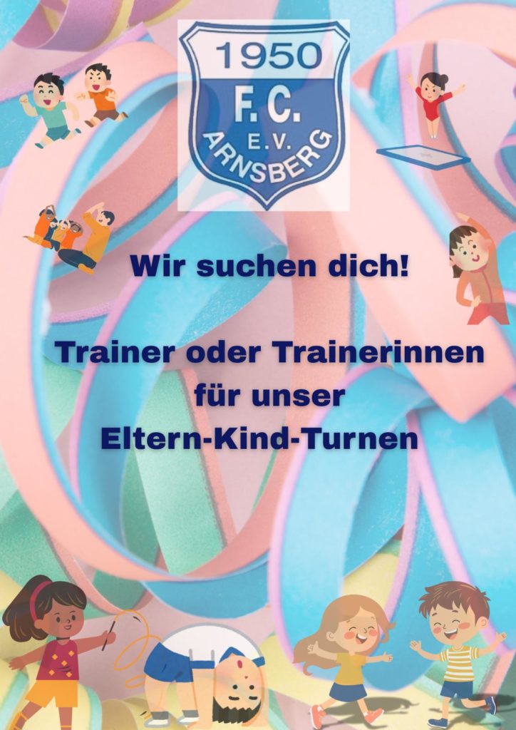 Der FC Arnsberg sucht engagierte Trainerinnen und Trainer für das Eltern Kind Turnen ab Januar 2026. Du bist bereits mit deinen Kids beim Eltern-Kind-Turnen. Perfekt, dann unterstützt uns doch gerne mit deiner Kreativität und Engagement.