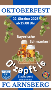 Wir laden alle unsere Mitglieder, Arnsberger und Fans zum Oktoberfest des FC Arnsberg ein.